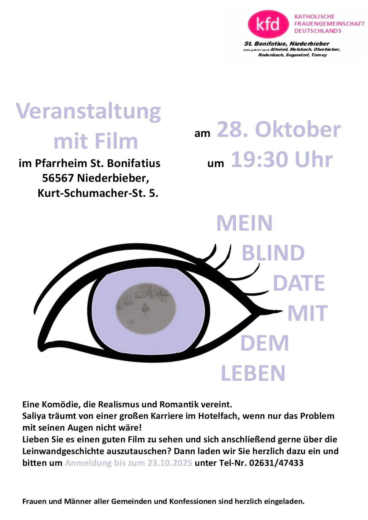 Am 28.10.2025 um 19:30 Uhr lädt die kfd St Bonifatius zur Veranstaltung mit Film ins Pfarrheim St. Bonifatius Niederbieber, Kurt-Schumacher-Str. 5 ein.