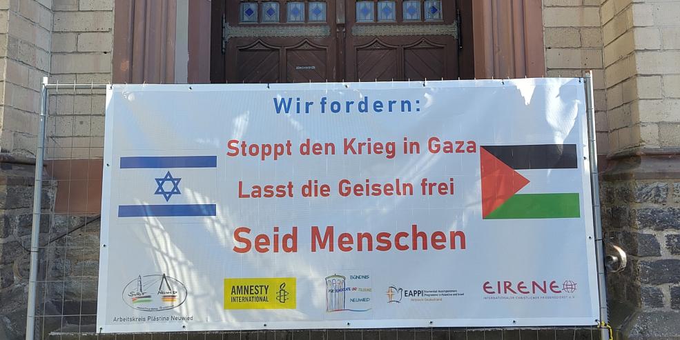 Konkrete Forderungen an die israelische Regierung hatte der palästinensische Erziehungswissenschaftler Sami Adwan, der schon oft in Neuwied war, den Veranstaltern geschrieben: „Hört auf, in Gaza Säuglinge, Kinder, schwangere Frauen und ältere Menschen auszuhungern, und lasst Lebensmittel, Wasser, Medikamente und Kochgas nach Gaza. Hört im Westjordanland auf mit den gewalttätigen Angriffen jüdischer Siedler auf Palästinenser. Hört auf, Siedlungen zu bauen und Siedler zu bewaffnen!“