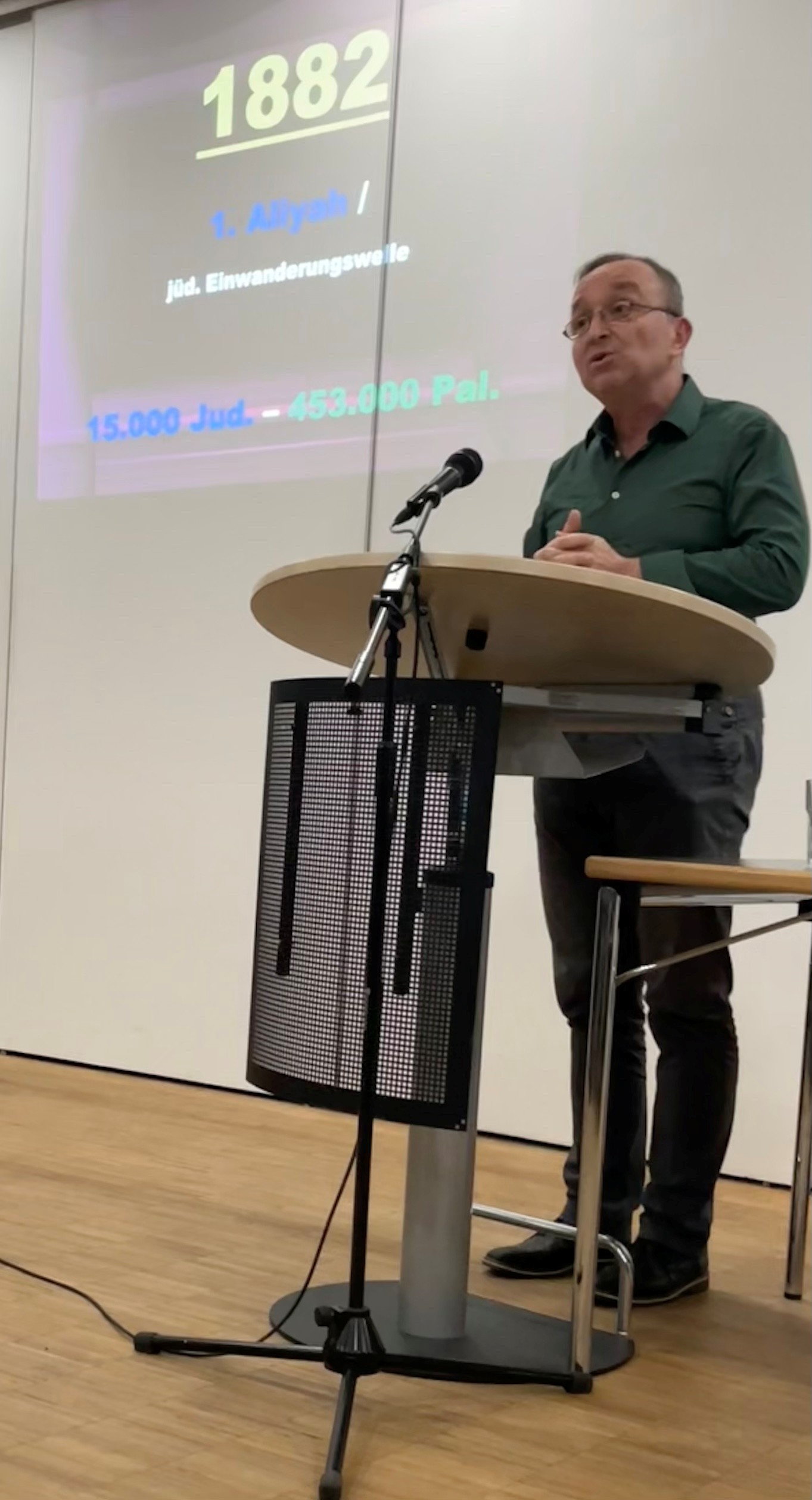 Josef Freise und Martina Keiling als Vertreter des Arbeitskreises Palästina dankten zum Schluss dem Referenten für sein Engagement. Seine Einblicke seien Motivation für den Arbeitskreis, sich weiter solidarisch mit den Menschen in Palästina zu engagieren.